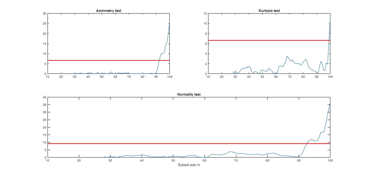%The curve which monitors the normality test shows a sudden big increase with the outliers are included