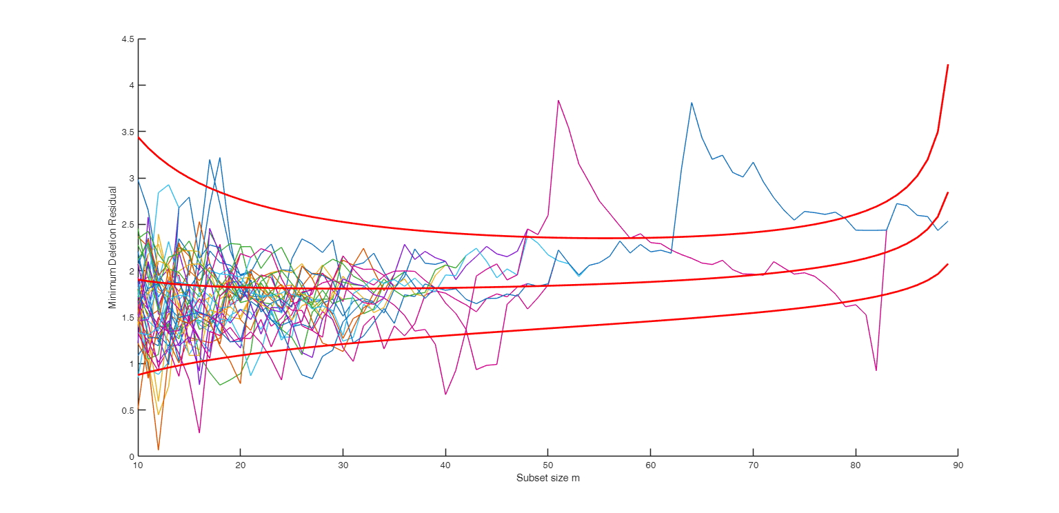 —Plot on the screen.scalar.If equal to one a plot of random starts minimum deletion residual appears on the screen with 1%, 50% and 99% confidence bands else (default) no plot is shown.