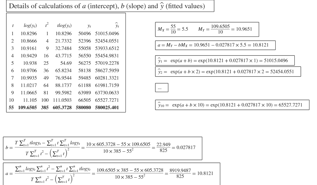 Example of exponential interpolation.The values of a company's production, in millions of euros were as follows: (See page 116 of [CMR])