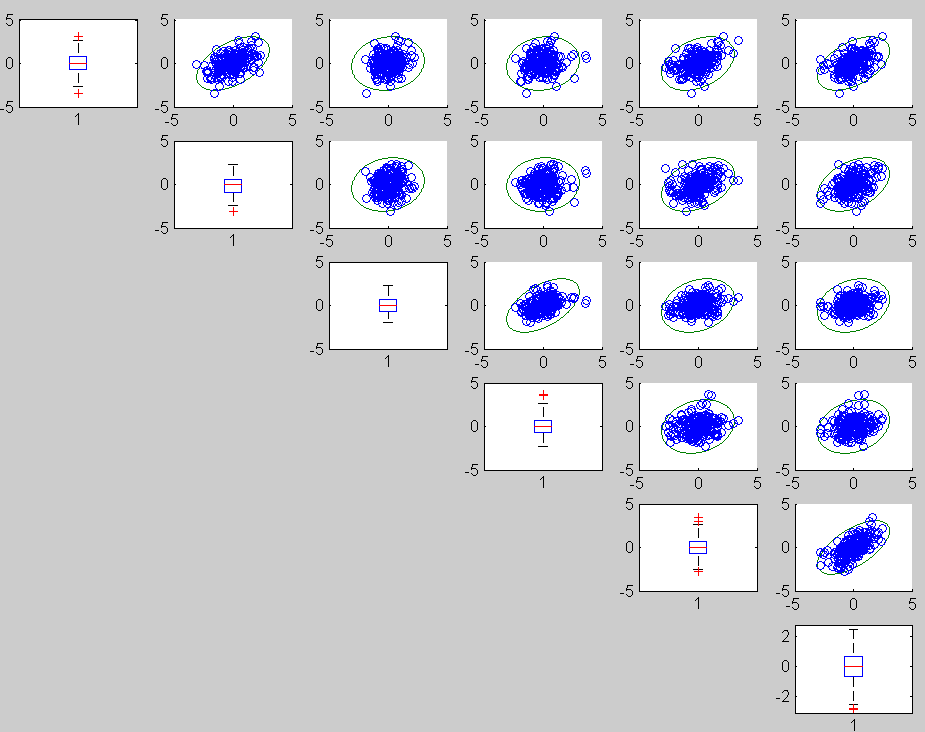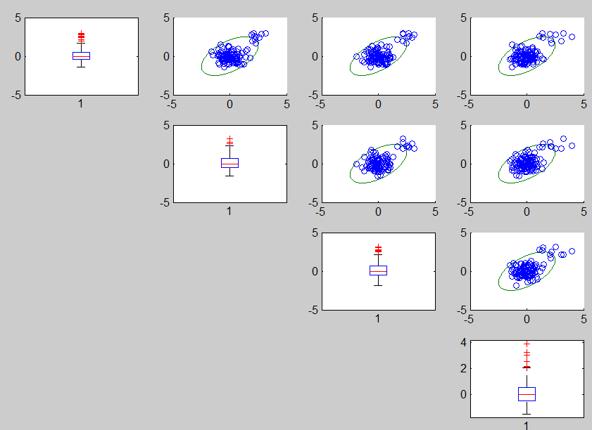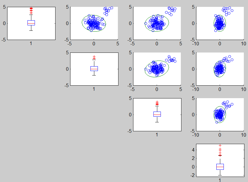 The code below generates the contaminated data and produces confidence ellipses for pair of variables.