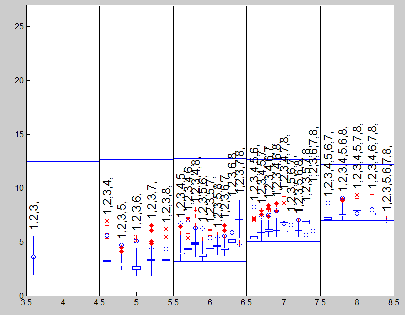 The candlestick plot shows that the bet model is the one which contains the first 3 explanatory variables.