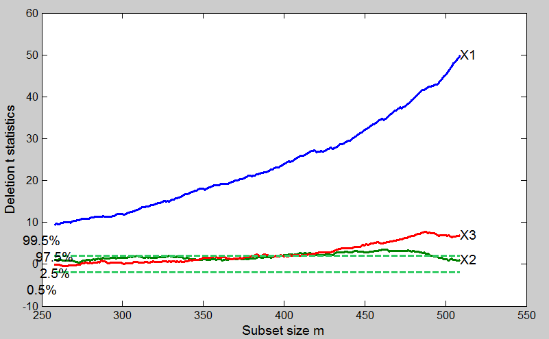 [out]=FSRaddt(y1,X,'plots',1,'quant',[0.025 0.975]);