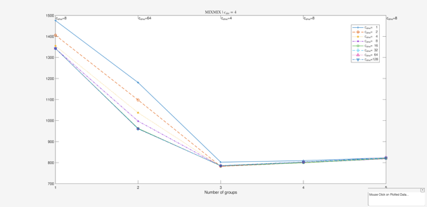 Gives the user the possibility of clicking on the different points and have information about 1) value of k which has been selected 2) value of restriction factor which has been selected 3) values of the information criterion 4) frequency distribution of the associated classification