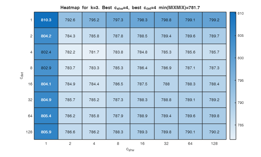 The labels of in the top part of Figure named BIC denote the values of $c_{det}$ ($c_{shw}$) for which IC is minimum